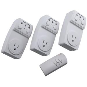 Wireless remote control plugs directly into standard wall outlet and operates three wall outlets through doors and walls up to 60 feet. Just plug in table lamps floor lamps or small appliances. Remote manual operation with power status indicator LED lights. Includes three wall outlets one master remote control battery ; 1 Year Manufacturers Warranty.